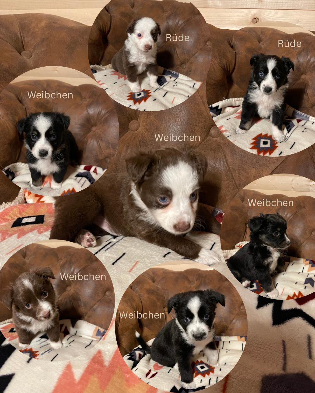Die Welpen sind da. Dieses Mal sind es 2 Rüden, je einer black tri und einer red tri, ansonsten noch 5 Weibchen, die ab Mitte Dezember ihr „für immer Zuhause“ suchen. Der Papa ist wieder der bildhübsche Whisky.